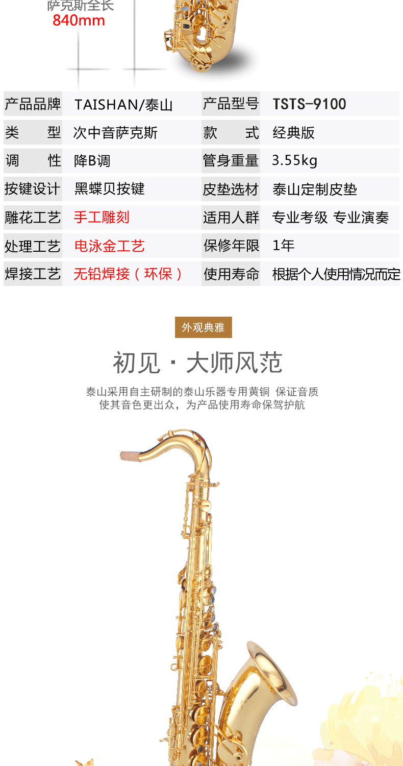 泰山中音降e調(diào)專業(yè)級(jí)薩克斯龍雀